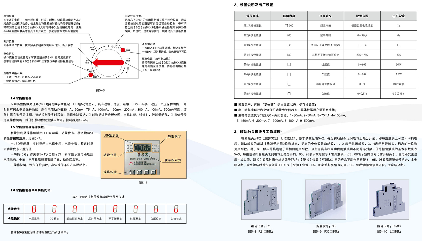 BKK1系列控制与保护开关电器主要用于交流50Hz(60Hz)、额定电压至690V、额定工作电流自0.4A至125A的电力系统中接通、承载和分断正常条件(包括规定的过载条件)下的电流,且能够接通、承载并分断规定的非正常条件(如短路)下的电流。BKK1系列采用模块化的单一产品结构形式,集成了传统的断路器(熔断器)、接触器、过载(或过流、断相)保护继电器、起动器、隔离器、电机综合保护器等多种传统的分离元器件。产品具有远距离自动控制与就地人力控制兼有的方式进行控制操作的功能,具有协调配合的时间-电流保护特性,具有控制与保护自配合、短路后连续运行,具有分断能力高,飞弧距离小、寿命长,具有保护整定电流均可调的特性,操作方便、配套模块多样齐全等优点,可以实现对电动机负载、配电负载的控制和保护。产品符合GB/T 14048.9《控制与保护开关电器》标准。